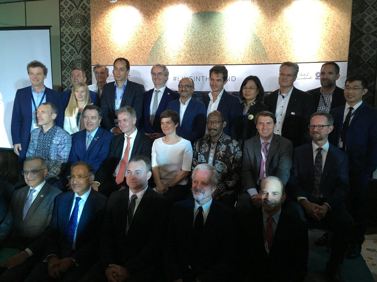 盈創代表與各國政要、企業領導人、第三方機構領導人出席在印尼舉行的“我們的海洋”會議,共同簽署“新塑料經濟全球承諾”。